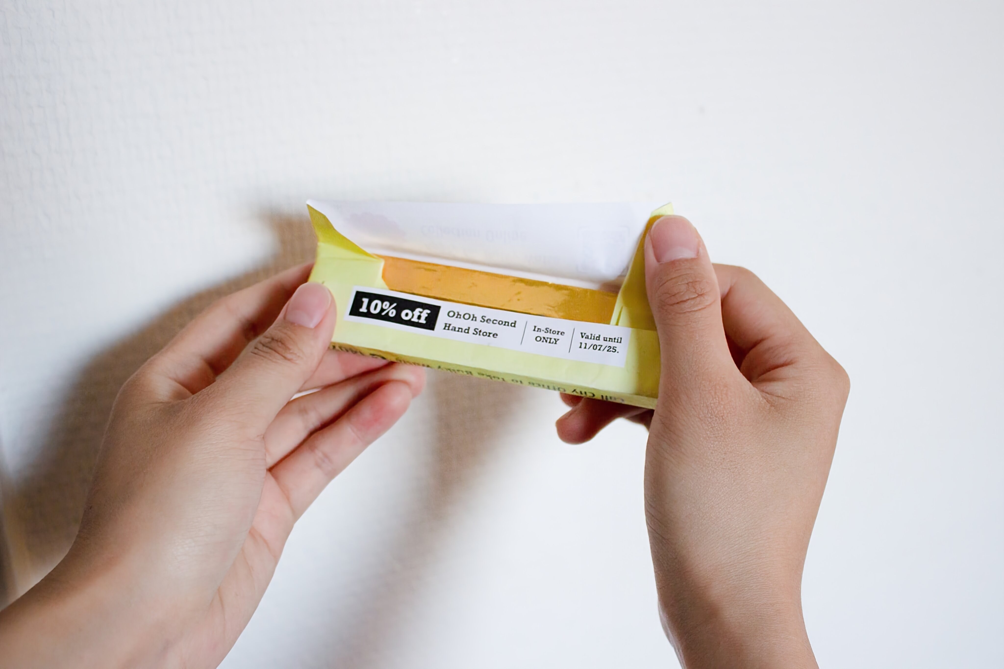 Occasionally, the service offers snacks, as the service sometimes partners with local businesses for seasonal promotions. There is a lottery mechanism in place where some snack packagings are with coupons for second-hand stores. This incentive encourages participation and promotes the system of a circular economy.