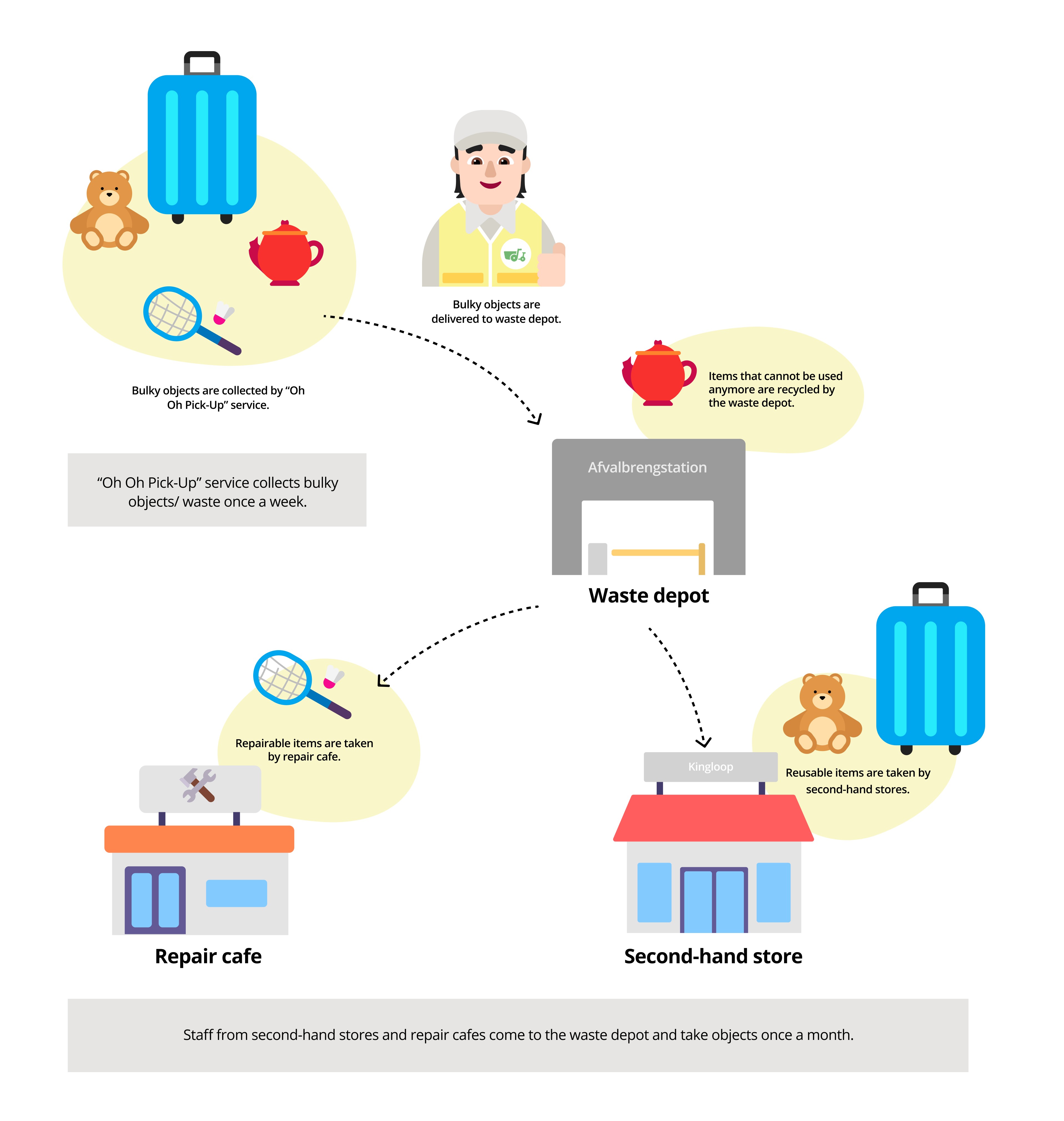 "Oh Oh Pick-Up" is a bulky waste collection service, which allows The Hague citizens to bring their bulky waste directly to the car without making an appointment.