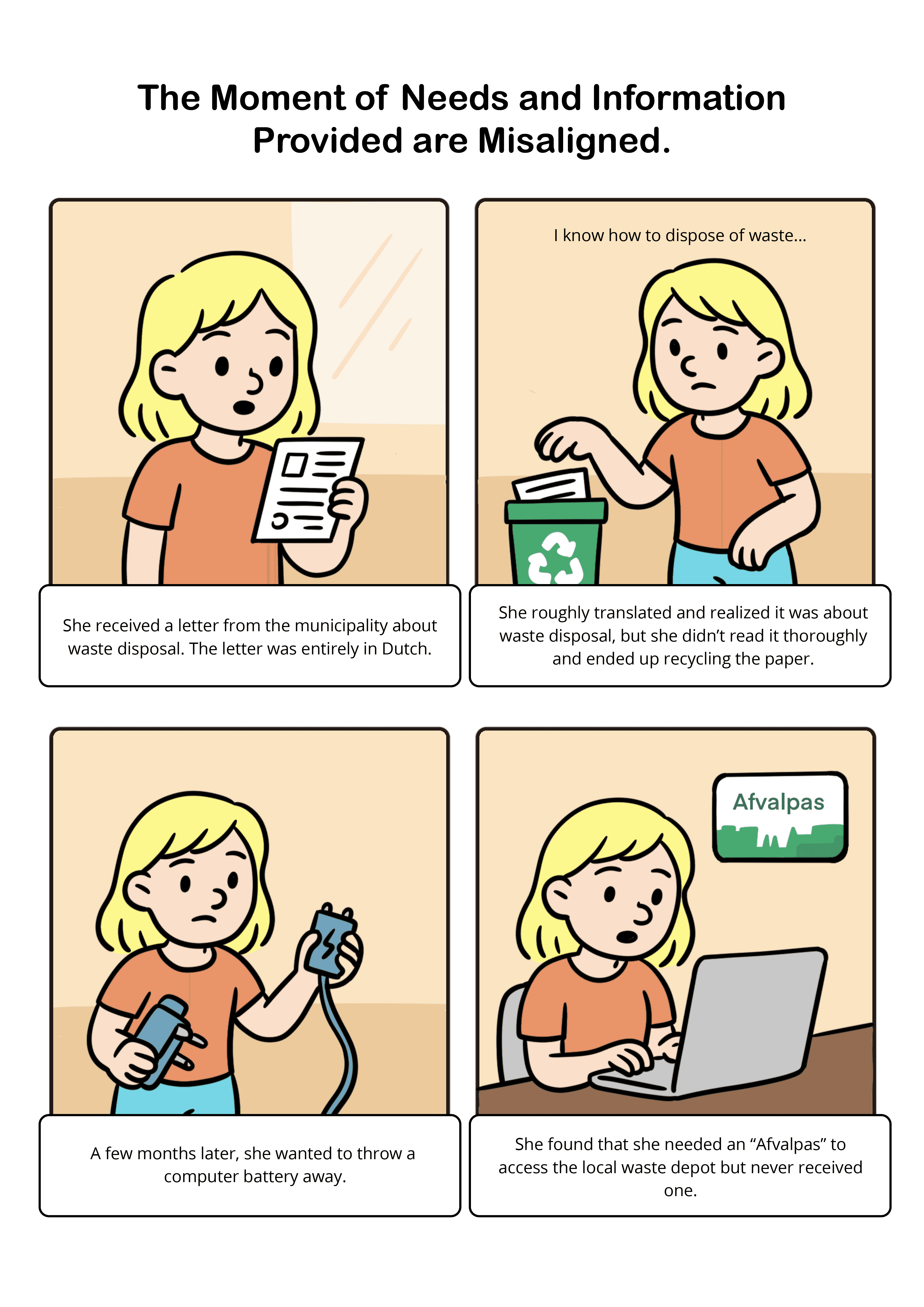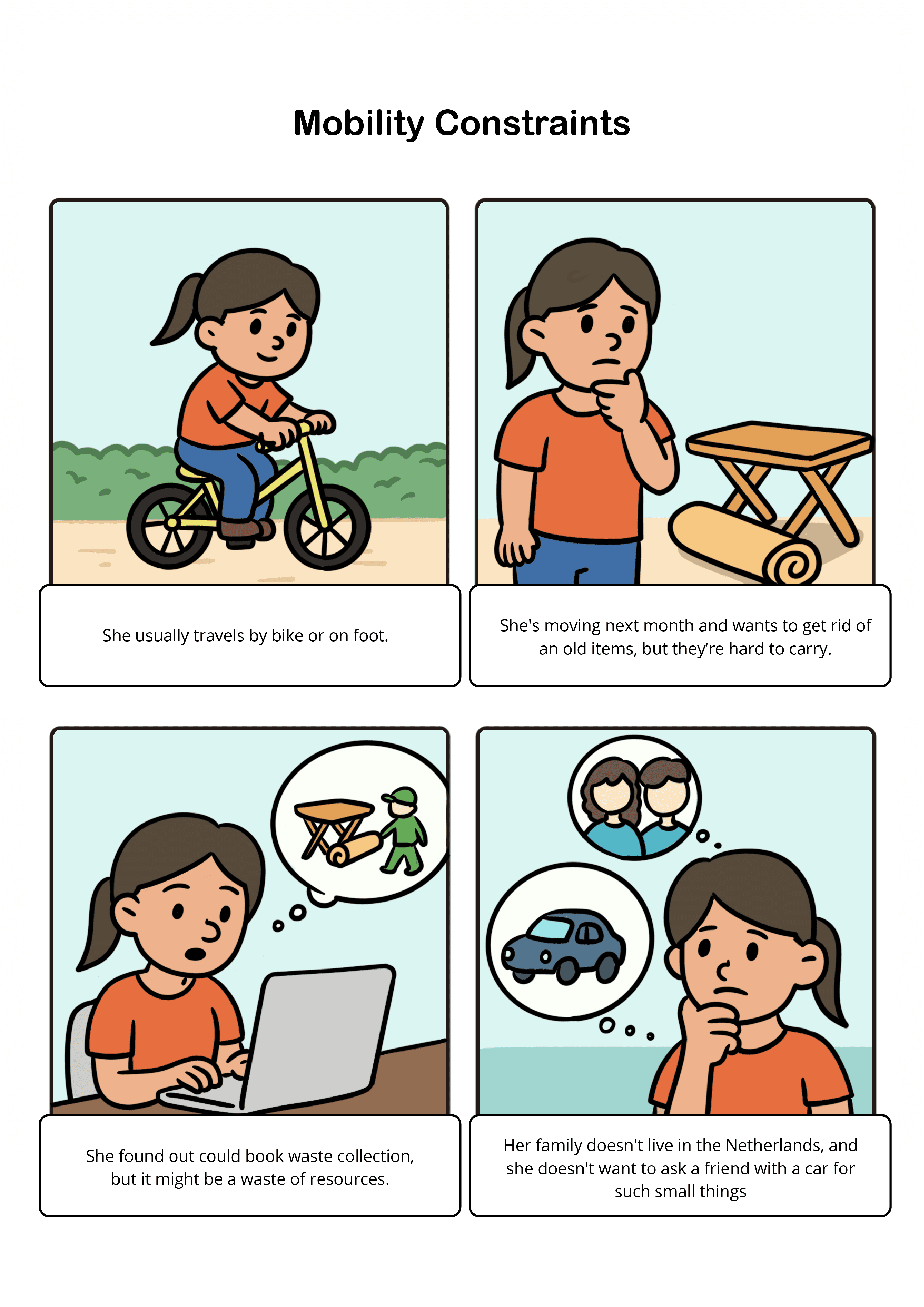 For residents, especially those with a migration background and a short-term connection to the city. Bulky waste disposal can be done in ways that feel warm, social, and an empowering experience. It provides an opportunity to interact with the neighborhood and feel part of a community, even temporarily. For the municipality, the goal is not just outcome-based efficiency, but creating stronger connections with residents' lived experiences.