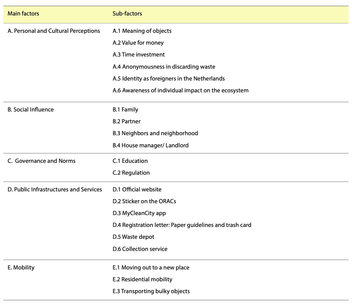 Most findings regarding culture emerged at the micro-scale, such as individuals, family, partner, neighbors, and so on. They also intersect with broader meso- and macro-level factors of regulations or education, highlighting the multi-scalar nature of the practices of bulky waste disposal. Since this project is commissioned by the municipality of The Hague, it further explores how meso-level public services and infrastructure impact micro-scale behaviors, aiming to avoid the misalignment between the scale of the problem and that of proposed solutions.