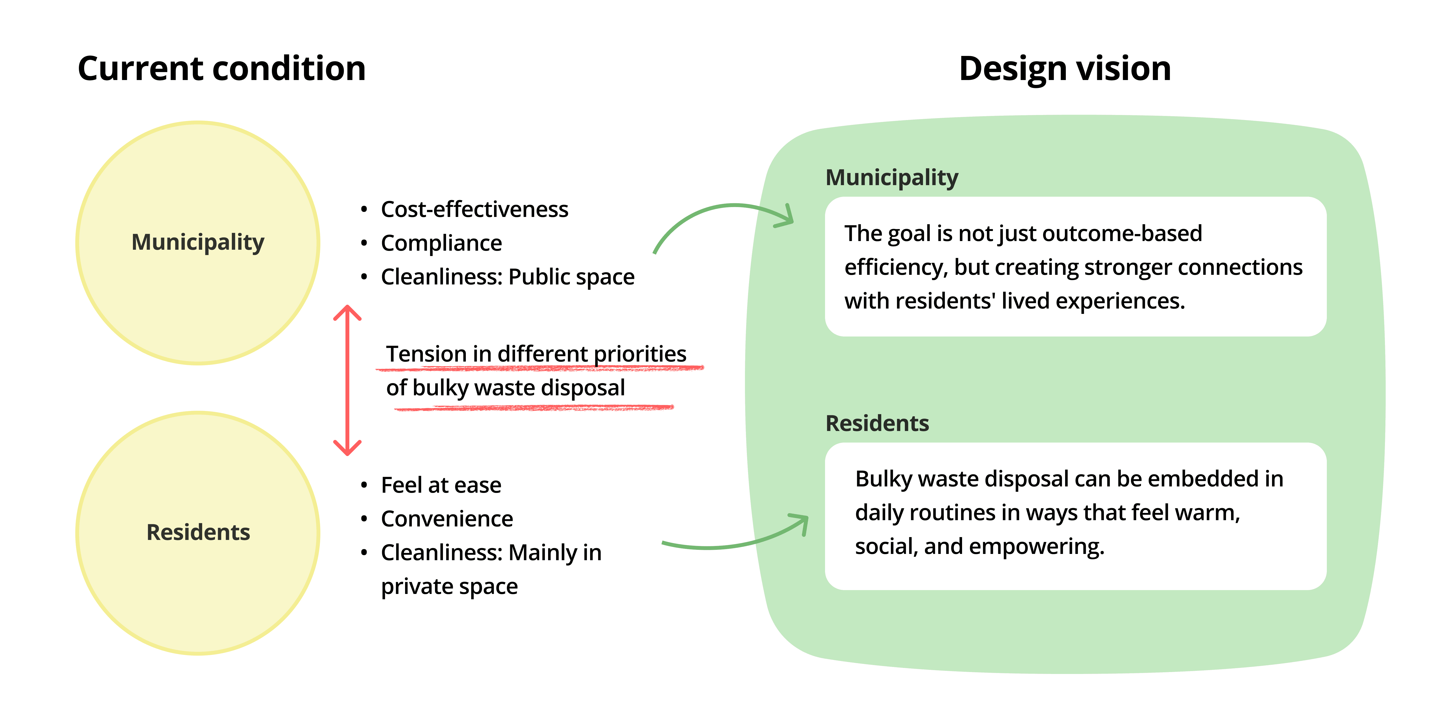 While earlier findings revealed tension between the municipality and the residents' needs. The project envisioned that the interventions could act as a bridge, providing accessible solutions and supporting responsible disposal behaviors, where both institutional goals and resident needs are addressed.