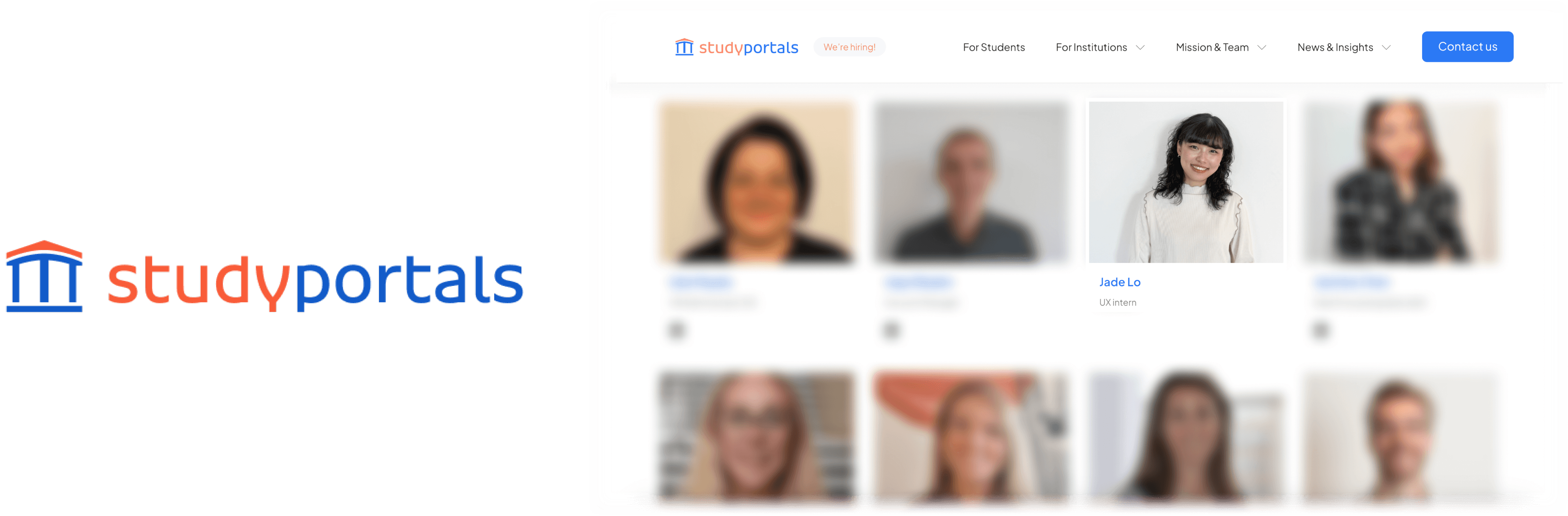Currently, I am a UX Designer (intern) at Studyportals, where I work on design system scalability, high-traffic product features, and ongoing user research.
